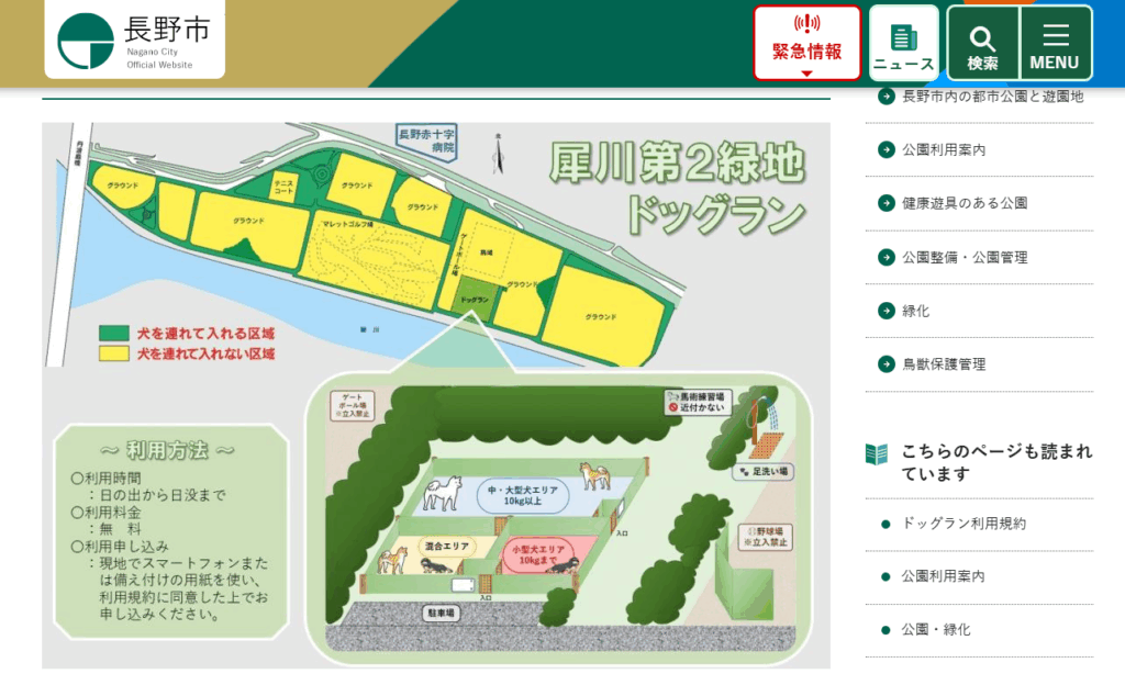犀川第2緑地ドッグランは、犀川沿いの公園にある長野市が管理する無料ドッグランです。